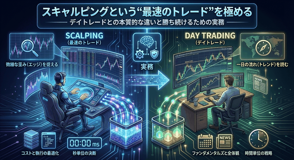 スキャルピングは数秒から数分で完結する超短期売買であり、デイトレードとは似て非なる世界です。